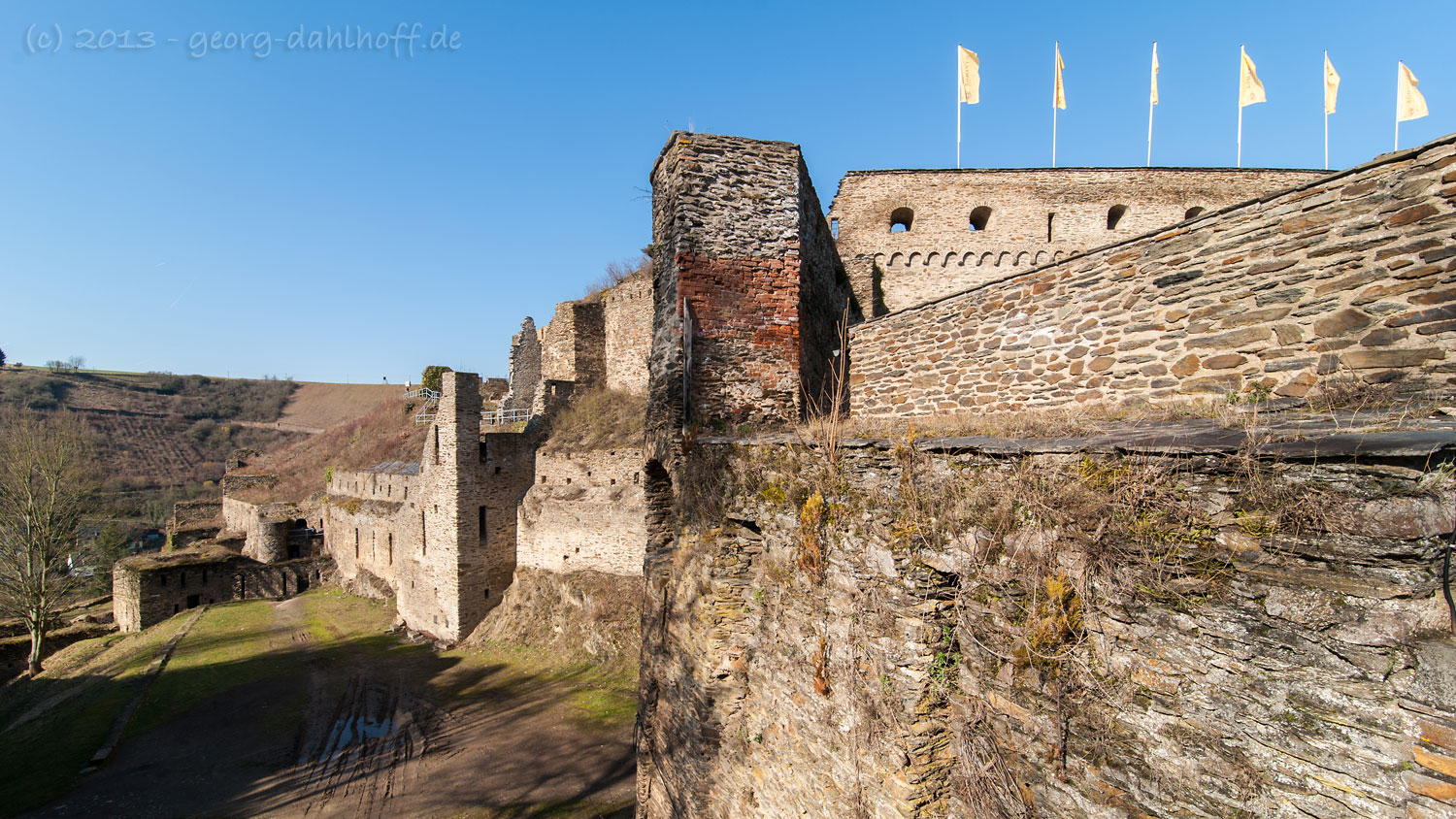 Vom Rhein aus (vom Schiff) habe ich die Burg im letzten Jahr gesehen, ich erkenne sie an den gelben Fähnchen, wie schön, dass Du sie mir jetzt so ausführlich aus der anderen Perspektive zeigst.