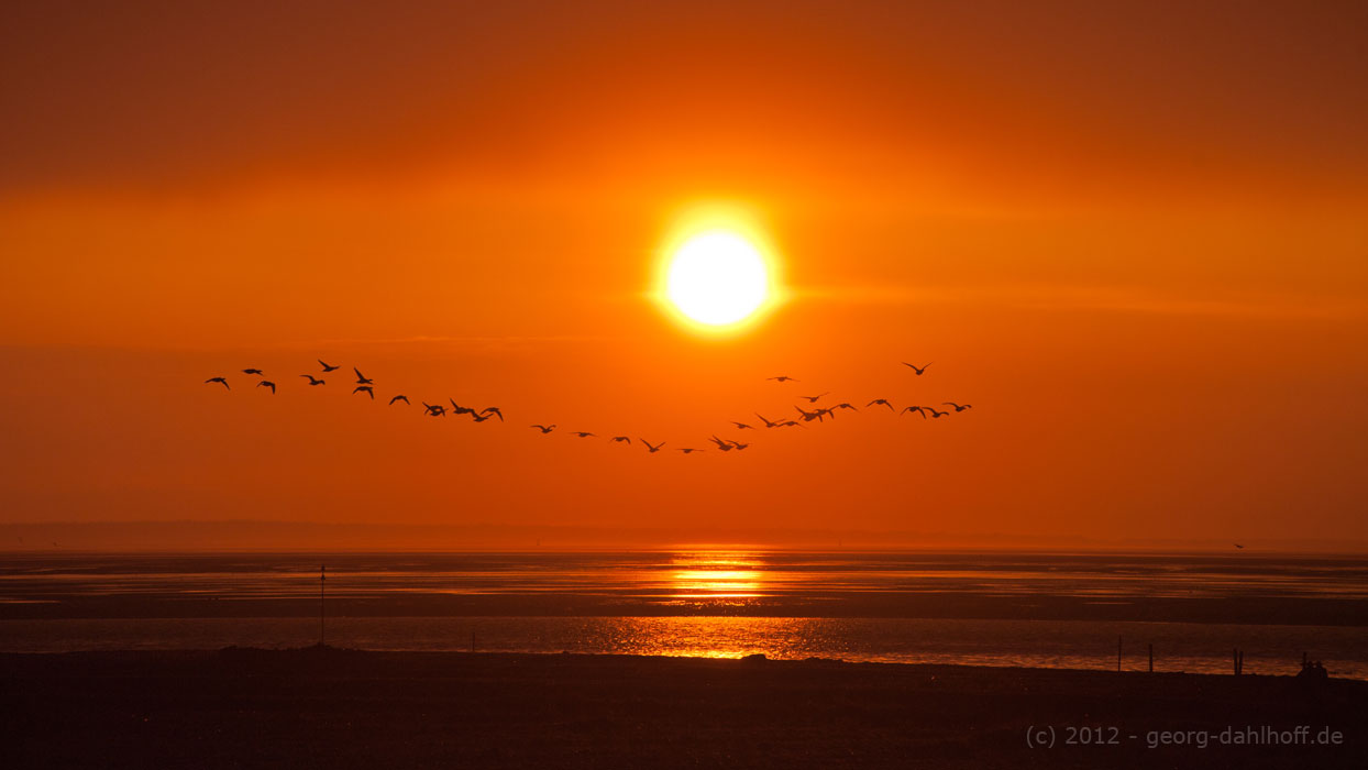 Nun gut, obwohl Sonnenuntergänge ja ein Klassiker sind, ist dieses, auch gerade wegen der Auflockerung durch die Vögel, wunderschön geworden.
